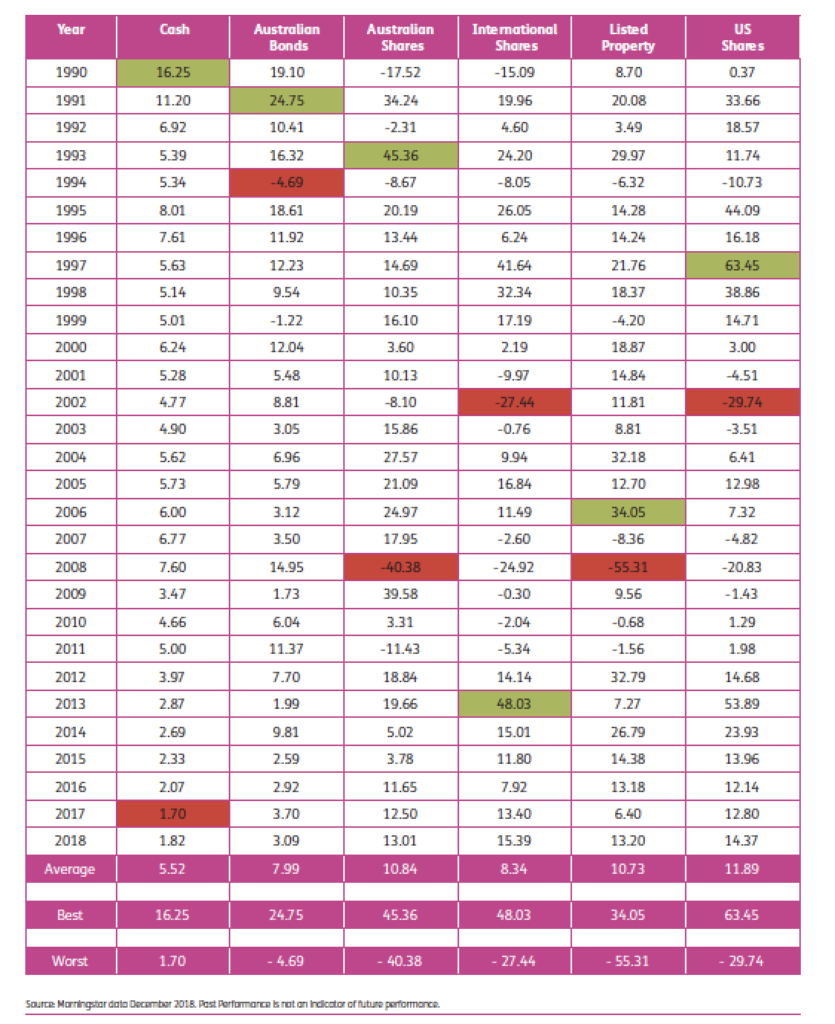 Return Vs Risk : The Higher the returns = higher the risk of those investments have a negative performance in a given year.