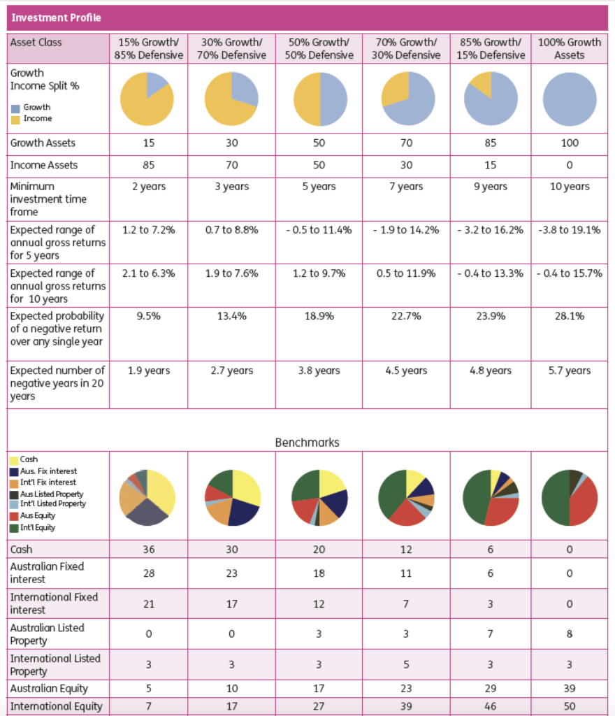 Which of the following asset class profiles would suit you best when considering the benchmarks of asset types that would be included in your portfolio?