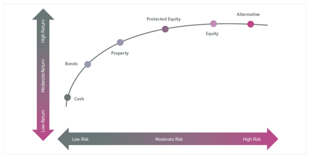 Risk is closely associated to return, with the highest potential returns usually associated with higher-risk investments. When investing it is important to strike a balance between the risks you’re willing and able to take, and the kind of return you’re looking to achieve.